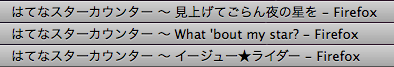 もうひとつのボツネタは、ページタイトルにちょっとした小細工を入れるかどうか悩んで、結局入れなかったネタ。もし採用していたら、ブラウザーのページタイトルはこんな感じで星にちなんだ曲名がサブタイトル的にランダム表示されていた。
